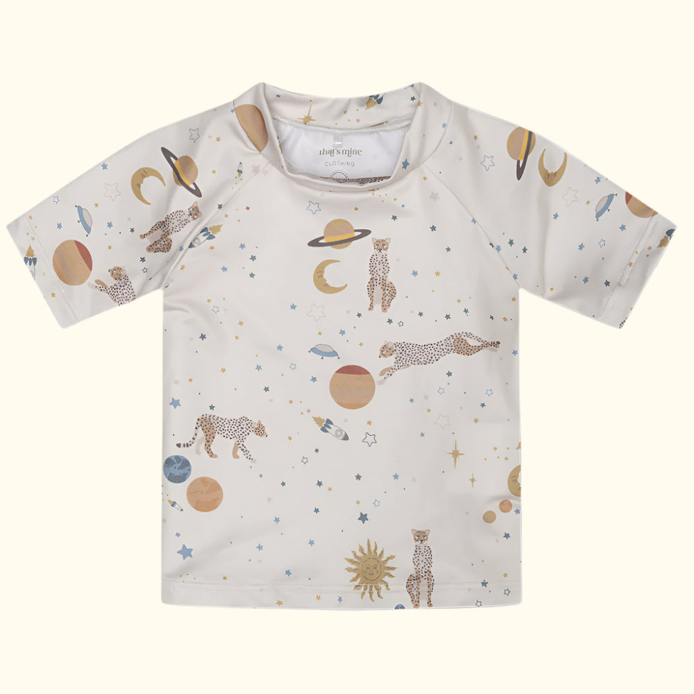 Bluzë noti me mbrojtje UV, dizajn Leo Espace, e bërë për të siguruar liri lëvizjeje dhe mbrojtje gjatë lojërave në ujë dhe diell.