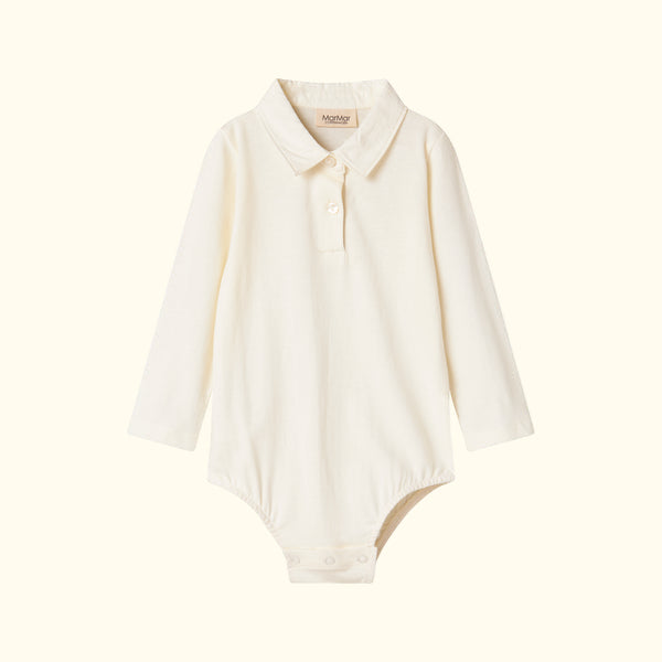 Body Beko vjen në ngjyrë qumështi për vogëlushët tuaj. E përbërë me material pambuku, është e dizajnuar me jakën si këmishë, perfekte për kombinimet e festave ose sesione fotografie. Me butësi maksimale për lëkurën e vogëlushëve tuaj.