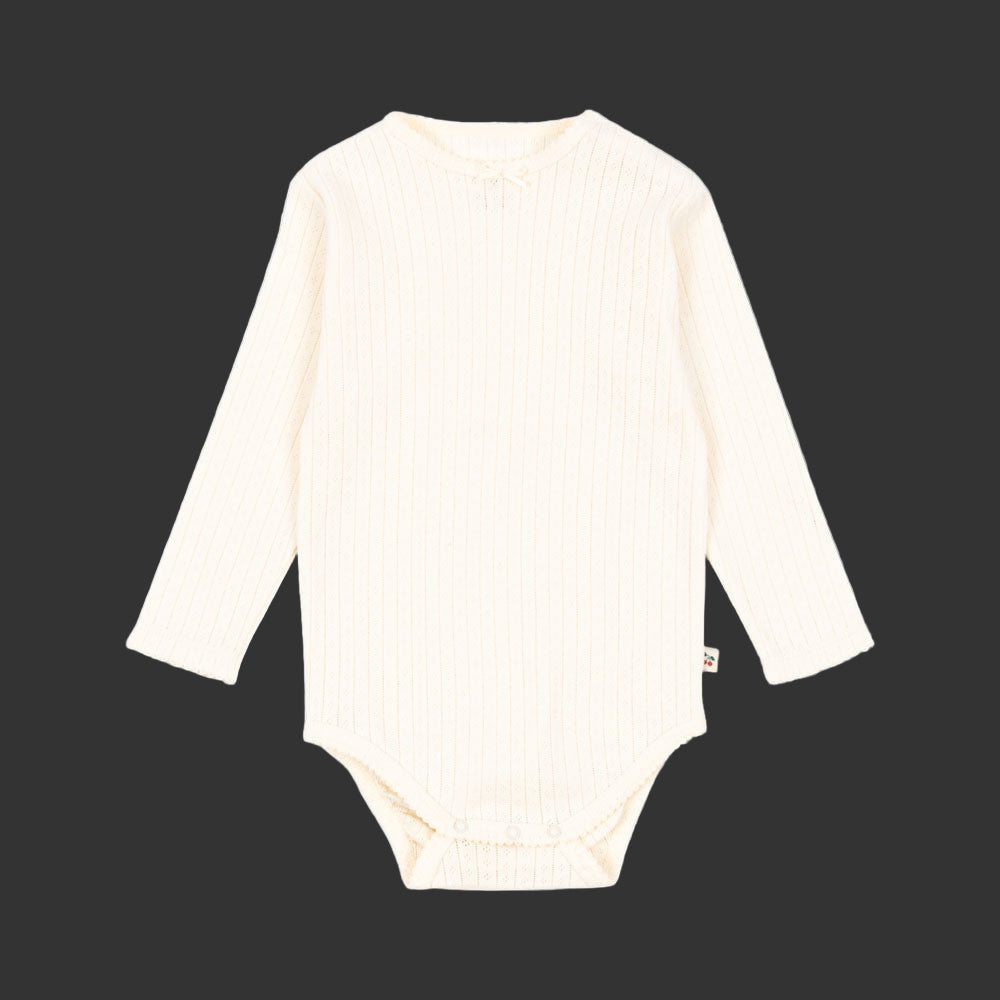 Body pambuku ngjyrë buttercream, i butë për lëkurën delikate të bebeve.