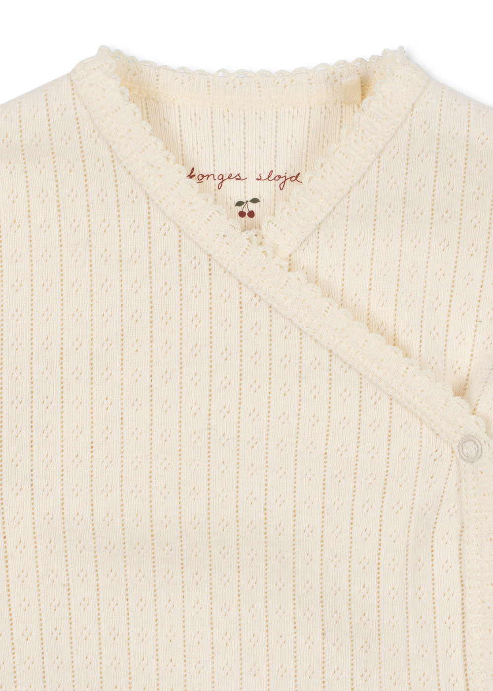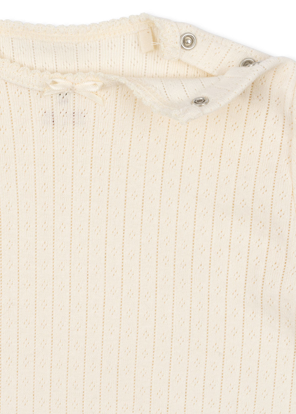Body pambuku ngjyrë buttercream, i butë për lëkurën delikate të bebeve.