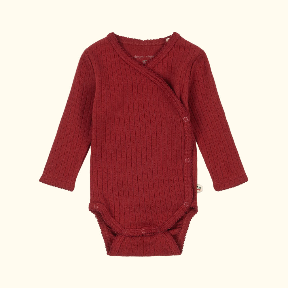 Body pambuku ngjyrë të kuqe, i butë për lëkurën delikate të bebeve.