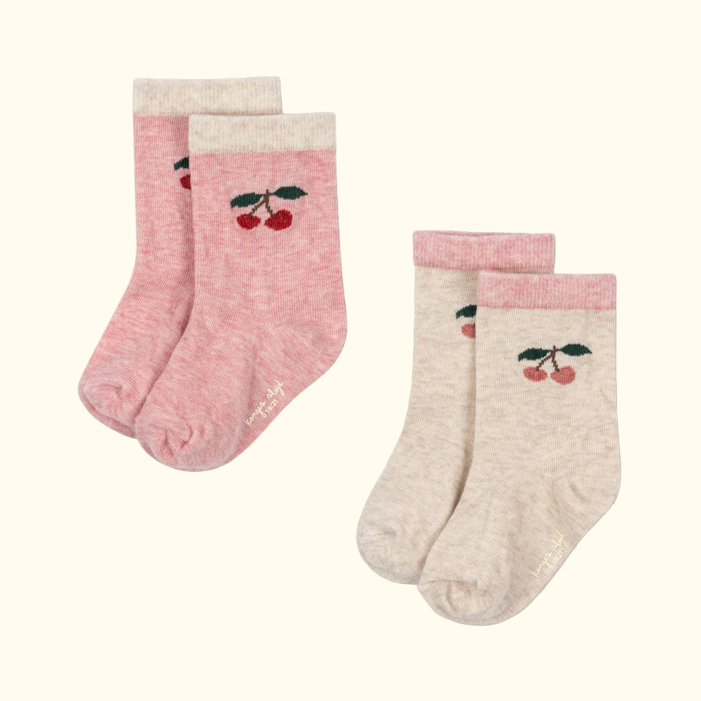 2 palë çorape pambuku të punuar ngjyrë bezhë dhe rozë, me dizajn qershie.