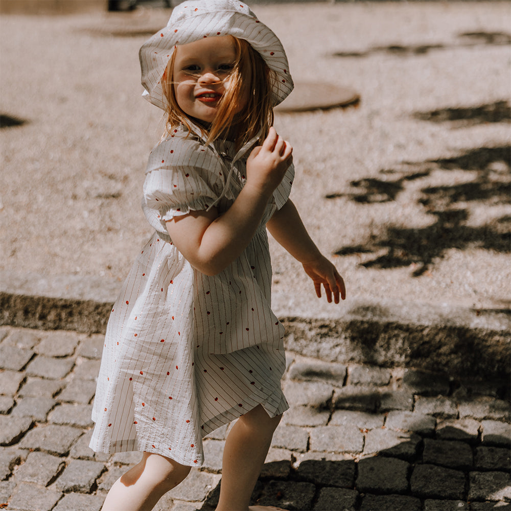 Fustan veror për vajza me dizajn nusepashke në ngjyra të ngrohta. Prerje e lirshme dhe e rehatshme për të gjitha ditët me diell.