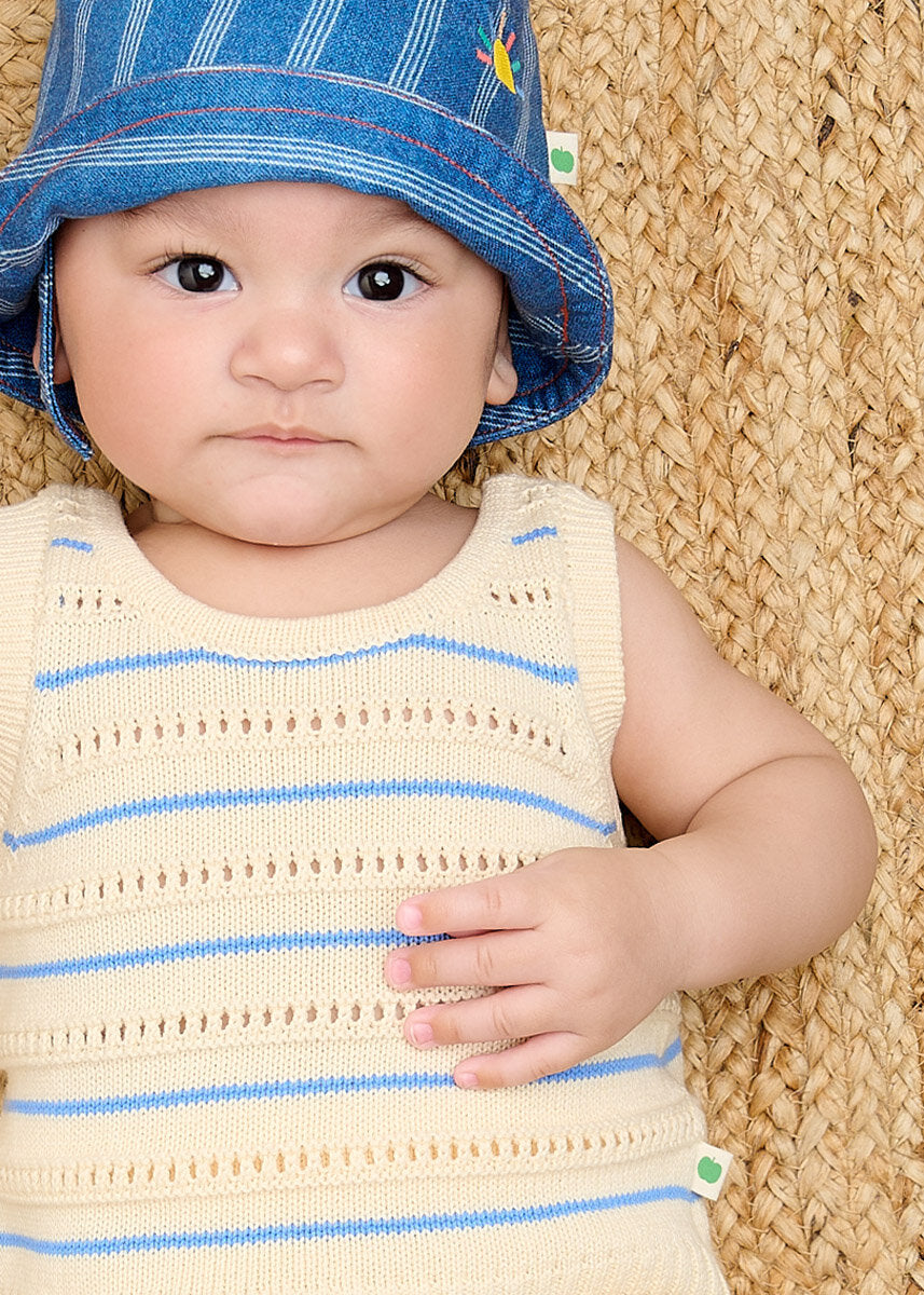 Kanatierja është klasike, e lehtë dhe perfekte për ditët me diell. Materiaali prej pambuku organik siguron rehati dhe ajrosje maksimale. Ideale për veshje të përditshme ose për kombinime të lezetshme verore.
