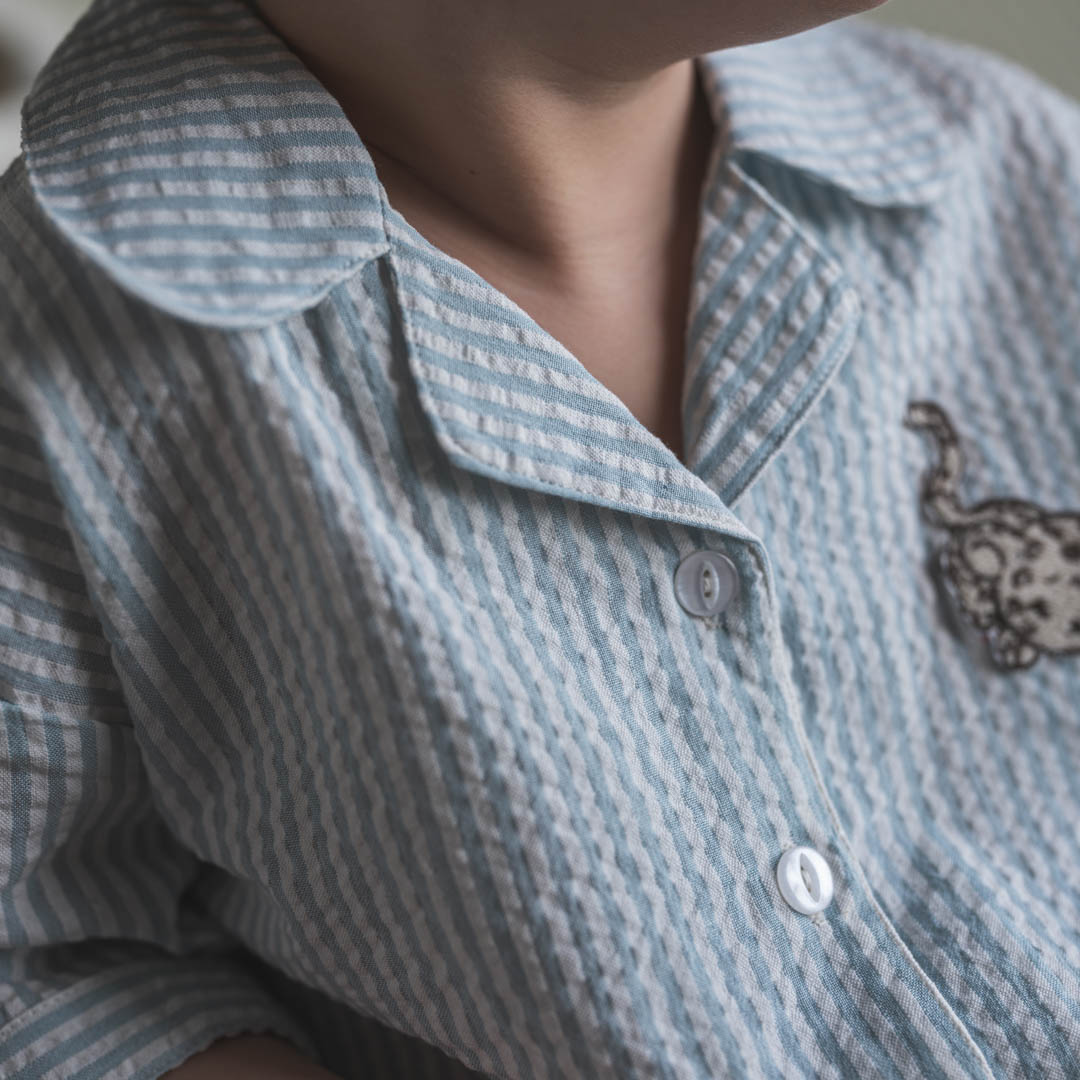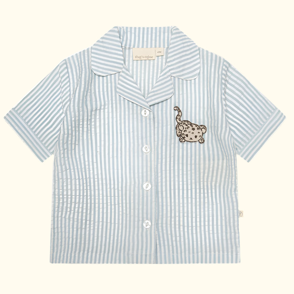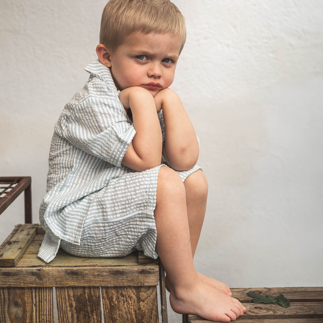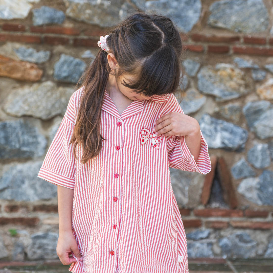 Këmishë e lehtë me vija blu dhe të kuqe, që sjell pak stil marinar në garderobën e vogëlushëve. Perfekte për ditë të ngrohta, për të luajtur apo për shëtitje buzë detit.