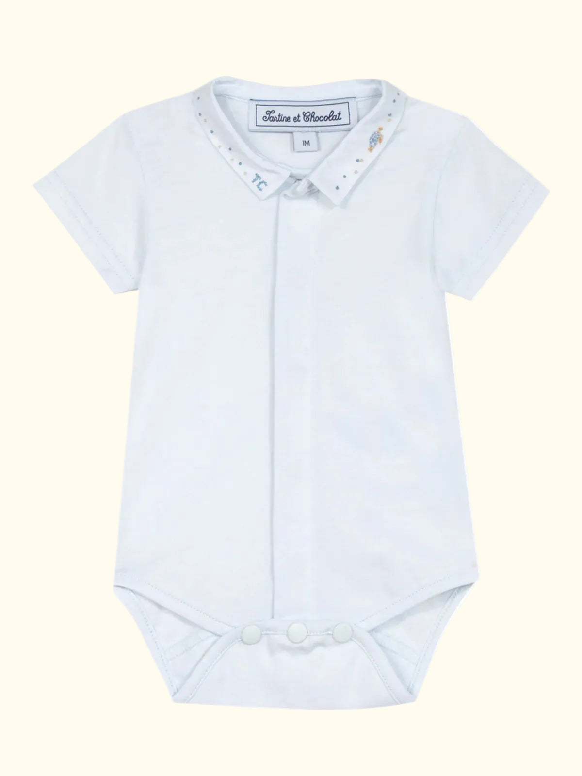 Bluzë Tartine et Chocolat për djem, në ngjyrë blu ciel, pjesë e koleksionit trousseau, e punuar me material të butë dhe cilësor që respekton lëkurën delikate të fëmijëve. Dizajn elegant dhe i rehatshëm, ideal për përdorim të përditshëm ose për kombinime të veçanta me stil klasik.