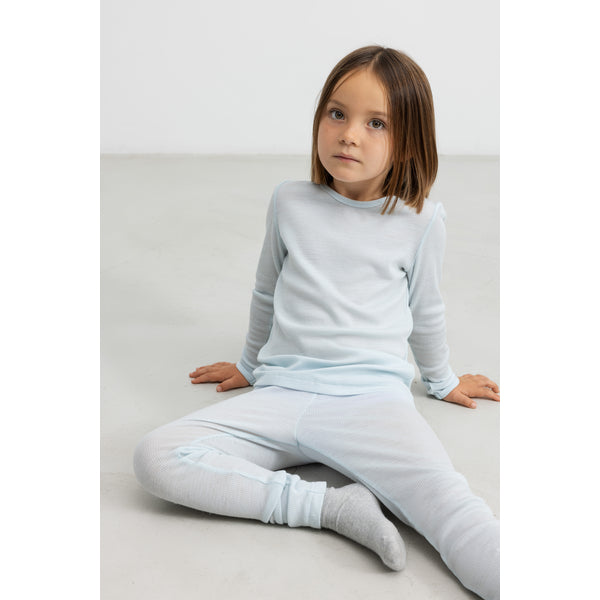 Pantallonat blu për të voglat tuaja. Të përbëra nga materiali cilësor 100% merino, kanë butësinë maksimale për lëkurën e vogëlusheve tuaja.