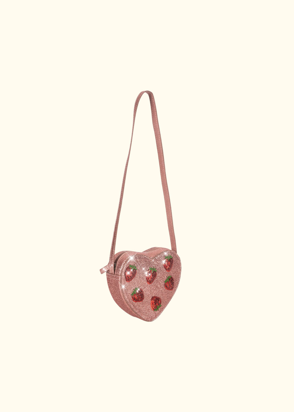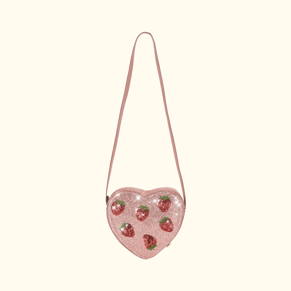 Çantë krahu rozë për vajza, me dizajn luleshtrydheje.